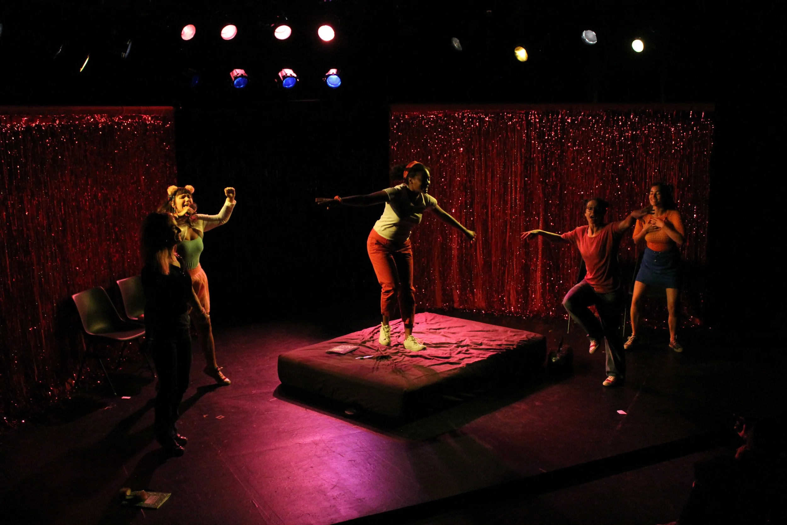 A theatrical diary of teenage proportions, Dear Diary, LOL takes as its charge staging the verbatim words from six 13 year old American girls’ diaries in the late 90s/early 2000s. Dear Diary, LOL exposes the the often hilarious, always tumultuous, struggles of a small group of America’s soon-to-be women. Lead Artist Francesca Montanile Lyons wove excerpts from six different diaries into one cohesive arc and worked with the ensemble drawing on Melodrama and Physical Character techniques to create a high-energy, frothy pink theatrical world.